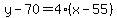 Substitute chirps=70,temp=55,slope=4 to solve for "b":