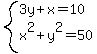 You can put this solution on YOUR website! The line 3y+x=10 intersects the circle x^2+y^2=50 in two distinct points. Suppose you drew a radius to each of the two points of intersection. Find the angle, in standard position, created by each radius.