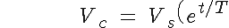 where T = CR and is called the time constant c = 100nF, R = 47kOhms and V = 5V.