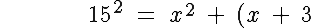 Question 322775: The hypotenuse of a triangle is 15 meters. If one leg is 3 meters longer than the other, what are the lengths of the legs?