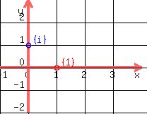 right the complex numbers plane is shown with major players highlighted: real 1 (red) and imaginary i (blue).