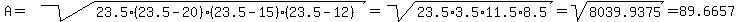 Heron's (or Hero's) formula says that where a, b, and c are the lengths of the triangle sides, and is the semiperimeter.