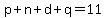 p, n, d, q for pennies, nickels, dimes, quarters.