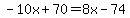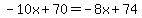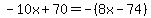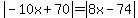 You can put this solution on YOUR website! Solve |-10x + 70| = |8x - 74|
