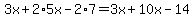using the distributive property on the 2(5x -7) part of the expression, we get: