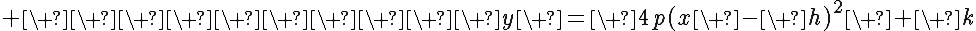 which is a parabola with a vertical axis of symmetry and a vertex of (h,k). The parabola opens upward if , downward otherwise. is the distance from the vertex to the focus of the parabola and is the distance from the vertex to the directrix.