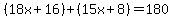 %2818x%2B16%29%2B%2815x%2B8%29=180