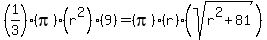 Let r be the radius of the cone. With height 9, the slant height l is then