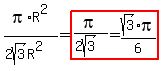You can put this solution on YOUR website! = radius of the circle = height of each of the 6 triangles forming the hexagon. = area of the circle = area of the hexagon is the ratio asked for.
