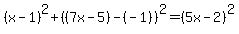 %28x-1%29%5E2+%2B+%28%287x-5%29-%28-1%29%29%5E2+=+%285x-2%29%5E2