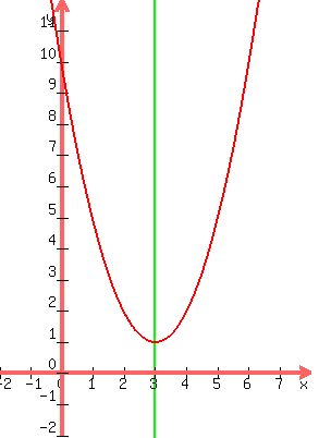 Here is the graph of y=x²-6x+10 and the green line through x=3