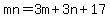 So there must be 8 ordered pairs (m,n) that make (m-3)(n-3) = 26 true and that make m*n = 3m+3n+17 true as well; where m,n are integers.
