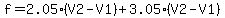In the answer I have put parentheses around the fraction to make sure that the division is done first and after the division is done for f and the number 5.05 then after that the V1 is added to the answer of the division.