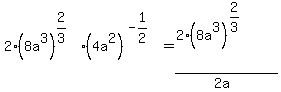 -> SOLUTION: 2(8a^3)^2/3 (4a^2)^-1/2