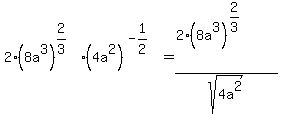 SOLUTION: 2(8a^3)^2/3 (4a^2)^-1/2