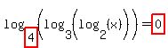 log+%283%2C+%28log+%282%2C+%28x%29%29%29%29+=+highlight%284%29%5Ehighlight%28o%29