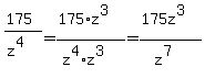 Find the least common denominator. 35/z^7, 175/z^4