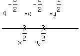 : (4x to the negative one power, y to the 1/3 power) to the 3/2 power