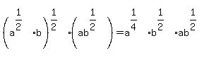 -> SOLUTION: (a^1/2b)^1\2(ab^1/2) This is what I came up with next then I'm stuck a^2/4b^1/2(ab^1/2)