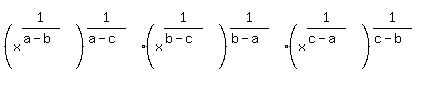 Please help me solving it [x^(1/a-b)]^(1/a-c)×[x^(1/b-c)]^1/b-a×[x^(1/c-a)]^1/c-b