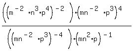 (mn^-2 p^3)^-4 (mn^2 p)^-1