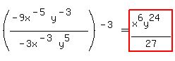 -> SOLUTION: (-9x^-5y^-3/-3x^-3y^5)^-3