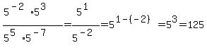 -> SOLUTION: How do you solve this fraction: 5 ^-2 x 5^3 divided by 5^5 x 5^-7? Thanks, Garrett