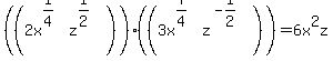 %286z%5E%281%2F2%29%29%2A%28x%5E%288%2F4%29z%5E%28-1%2F2%29%29=6x%5E2z