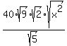 -> SOLUTION: Put the following expressions into simplified form. {{{ sqrt( 4/5 ) }}} {{{ 40 sqrt( 18x^2/5 ) }}}