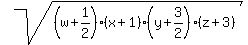 $$\left(w'-\frac{1}{2}\right)(x'-1)\left(y'-\frac{3}{2}\right)(z'-3)$$