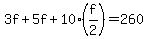 5F + 1(3)F + 10(1/2)F = 260