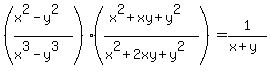 -> SOLUTION: (((x^2-y^2)/(x^3-y^3))*((x^2+xy+y^2)/(x^2+2xy+y^2)))