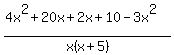 Question 919243: Simplify please: 4 + 2/x - (3x)/(x+5)