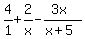 Simplify please: 4 + 2/x - (3x)/(x+5)