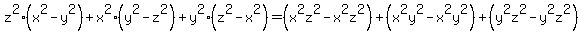 SOLUTION: simplify z^2(x^2-y^2)+x^2(y^2-z^2)+y^2(z^2-x^2)