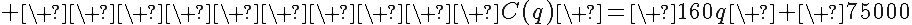 Question 1183174: A manufacturer sells a product for 210 per unit. The total cost consists of fixed overhead 75000 plus a marginal cost of 160. Write the revenue function.