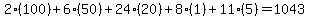 SOLUTION: Malcome has $1043 in bills of the following denominations: hundreds,fifties,twenties,fives,and ones. He has three times as many fifties as hundreds,twelve times as many twenties a