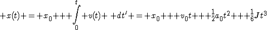 NOTE: Finding the equations for motion with constant jerk is very similar to finding the equations for constant acceleration. Jerk is the derivative of acceleration ( J = da/dt ), and you already know that v = dx/dt and a = dv/dt. Just integrate in part (a) and rearrange in part (b) like we did in class when we derived the expressions for constant acceleration.