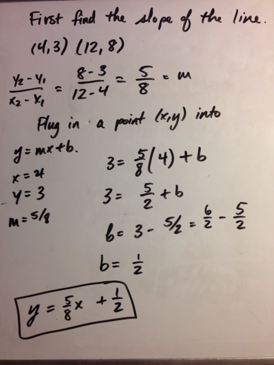 Find an equation of the line containing the given pair of points (4,3) and (12,8)
