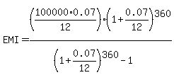For example, consider Principal = $100000, interest rate = 7%, and time period = 30 years = 360 months. The formula would then be