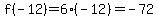 -> SOLUTION: Given the function f described by f(x) =6x, find each of the following. f(-12)=?? The multiple choices are: f(-12), f(1), f(28)
