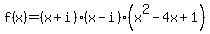 To find the remaining factor(s) we could divide f(x) by the two factors. But because of the i's involved it turns out to be easier to multiply the two factors we know and then divide f(x) by the product. Multiplying (x - i)(x + i) is actually quite easy because it fits the pattern of . So, according to the pattern: