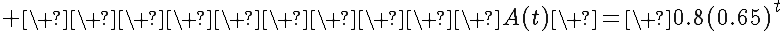 What is the decay rate in the function A(t)=0.8(0.65)(to the power of t) ?