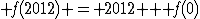 -> SOLUTION: Let f be a function such that f(x+y) = x + f(y) for any two real numbers x and y. If f(0) = 2, then what is f(2012)?