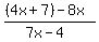 F(x)=4x+7 divided by 7x-4, g(x) = 8x divided by 7x-4 and solve for (f-g)(x)