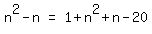 1= ( 1/(n^2-n)) + (( n^2+n-20)/