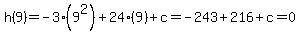 So we need to find the value of c in the function for which the height is 0 at x=9: