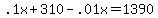 Question 127324: Janet invested $31,000, part at 10% and part at 1%. If the total interest at the end of the year is $1,390, how much did she invest at 10%?