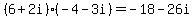 -> SOLUTION: Simplify {{{(6+2i)(-4-3i)}}}