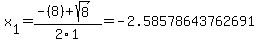 Again, the answer is: -2.58578643762691, -5.41421356237309. :